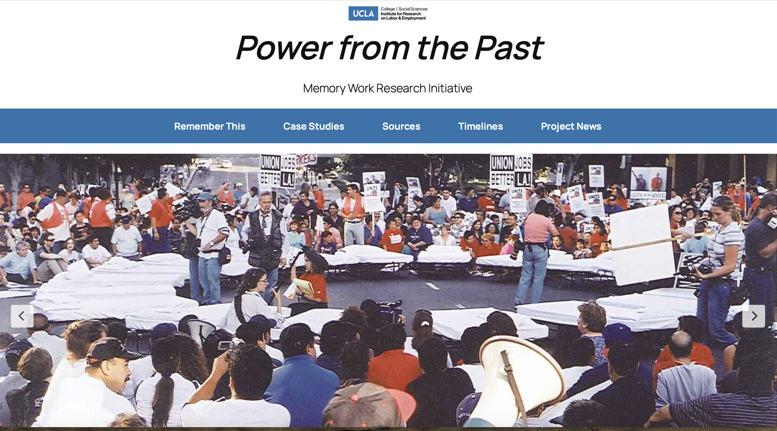 The MWRI has since collaborated on similar archival projects with community partners including UNITE-HERE Local 11, the Los Angeles Alliance for a New Economy (LAANE) and Clergy and Laity United for Economic Justice (CLUE). Materials from these collections and others donated to us by our partners comprise the basis of the Power from the Past website, as well as the Memory Work Video Collection and IRLE Photo Collection, available through Flickr.